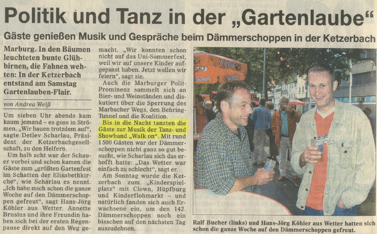 2001 | > Bis in die Nacht tanzten die Gäste zur Musik der Tanz- & Showband "Walk on!"...mehr |